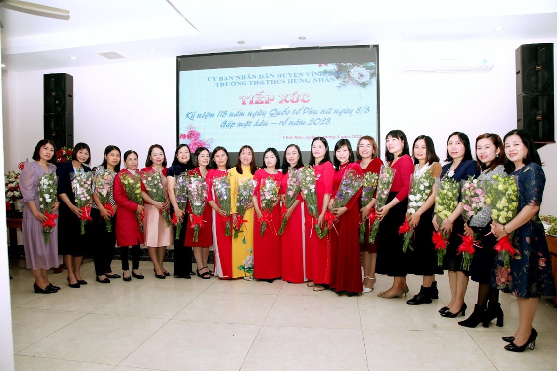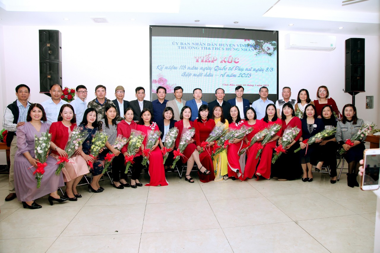 Ngày 04/3/2023, Công đoàn và nhà trường TH&THCS Hưng Nhân đã long trọng tổ chức kỉ niệm 113 năm ngày Quốc Tế Phụ Nữ, 1983 năm khởi nghĩa Hai Bà Trưng. Nhân dịp này, Công đoàn nhà trường đã tổ chức buổi gặp mặt dâu-rể của các đồng chí cán bộ, giáo viên, nhân viên trong nhà trường.
