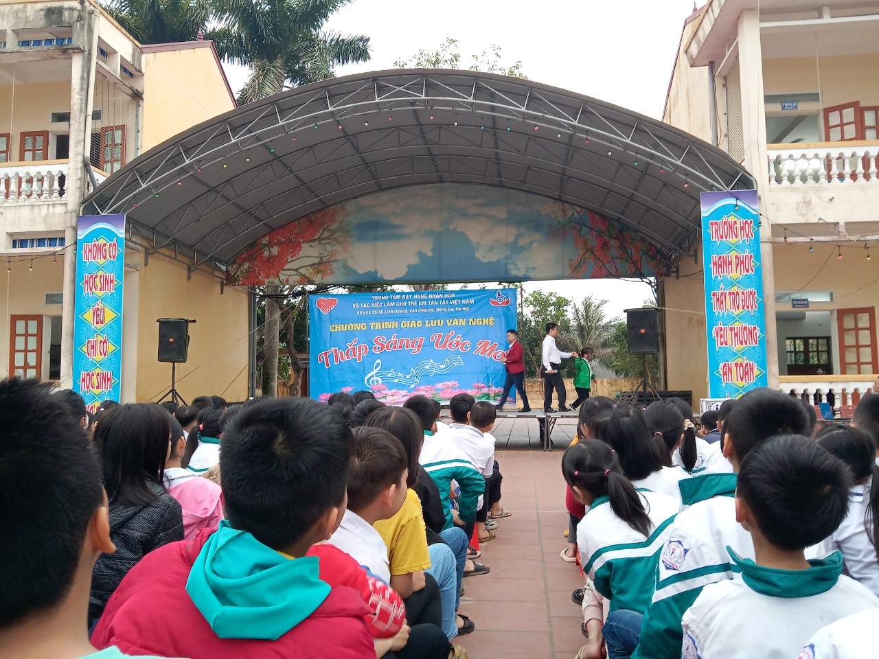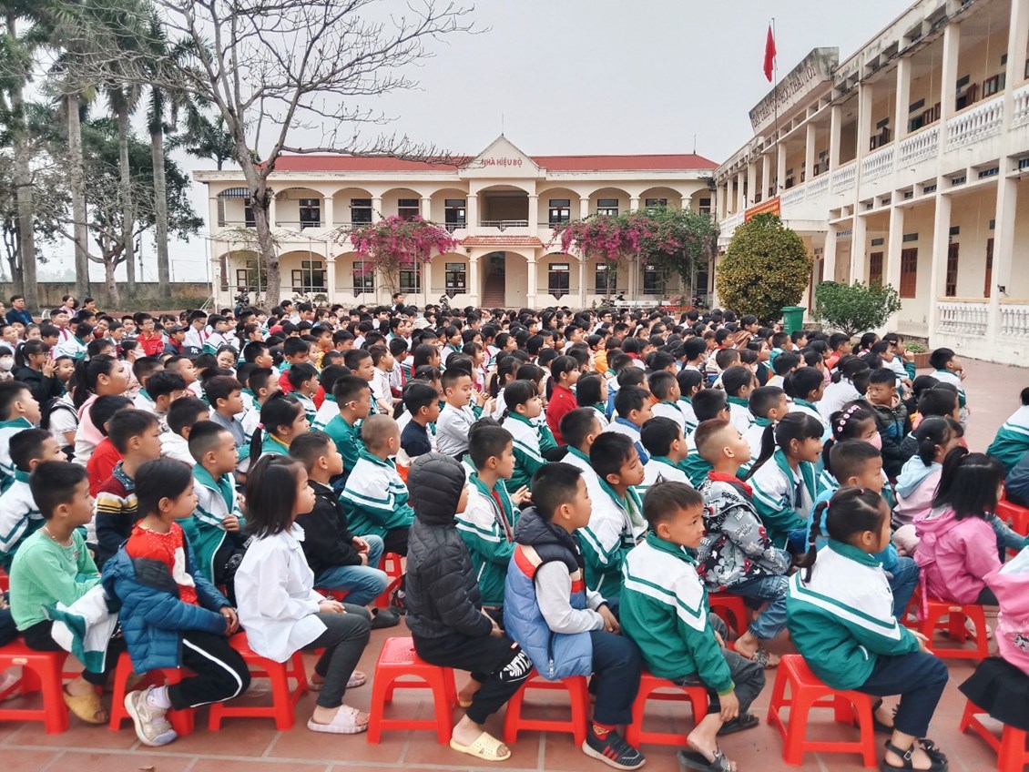Ngày 17/3/2023 nhà trường kết hợp cùng Trung tâm Dạy nghề nhân đạo và tạo việc làm cho trẻ em tàn tật Việt Nam đã tổ chức chương trình giao lưu văn nghệ “Thắp sáng ước mơ” do các học viên của Trung tâm biểu diễn. Với thời lượng 45 phút nhưng các thầy cô giáo và các em học sinh nhà trường đã có buổi hoạt động trải nghiệm thật ý nghĩa, được thấy các anh chị học viên của Trung tâm có hoàn cảnh khó khăn, khuyết tật nhưng luôn có ý chí nghị lực vươn lên trong cuộc sống, có tài năng phục vụ xã hội. Các thầy cô và các em học sinh được lắng nghe các bài hát chứa đựng nhiều tình cảm về cha mẹ thầy cô, được xem các tiết mục ảo thuật vui nhộn.
